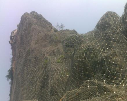 2. 掛網(wǎng)噴漿 這種方法主要是用來(lái)防護邊坡巖體的風(fēng)化剝蝕,以及防止小巖塊和碎石的松動(dòng)滾落,而對于防止危巖落石并不理想。這種方法將導致硯平公路的這兩段高邊坡全部寸草不生的邊坡,將嚴重破壞自然景觀(guān),而且由于云南地處高原,陽(yáng)光充足,陽(yáng)光反射,還可能造成行車(chē)安全問(wèn)題。該方法造價(jià)也較高,施工工期長(cháng),同時(shí),若某點(diǎn)發(fā)生崩塌落石,可能引起大片掛網(wǎng)噴漿邊坡的破壞,所以,這種方法對落石防護效果極不理想,而且,隨著(zhù)人們生態(tài)意識的提高,該方法已逐漸淘汰。