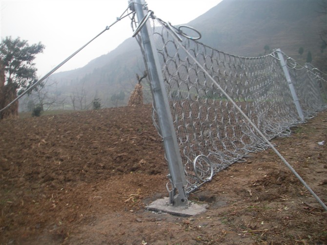 長(cháng)時(shí)間降雨過(guò)后,公路旁山坡往往可以見(jiàn)到邊坡失穩增多的現象(尤其是在湖南、四川、云南等山路較多地區),降雨提高了地下水的補給量,一方面降低巖體的強度,增大孔隙水的壓力,使邊坡滑動(dòng)面的抗滑能力降低;另一方面增大邊坡的下滑力,兩者給合起來(lái)極大地降低了邊坡的穩定性,經(jīng)過(guò)我公司對邊坡防護網(wǎng)的研究和改進(jìn),使該技術(shù)得到很好的發(fā)展和應用,成熟的柔性防護新技術(shù),完善的施工應用技術(shù)、標準的模塊化操作,使柔性防護網(wǎng)成為邊坡地質(zhì)災害得到大規模的應用。